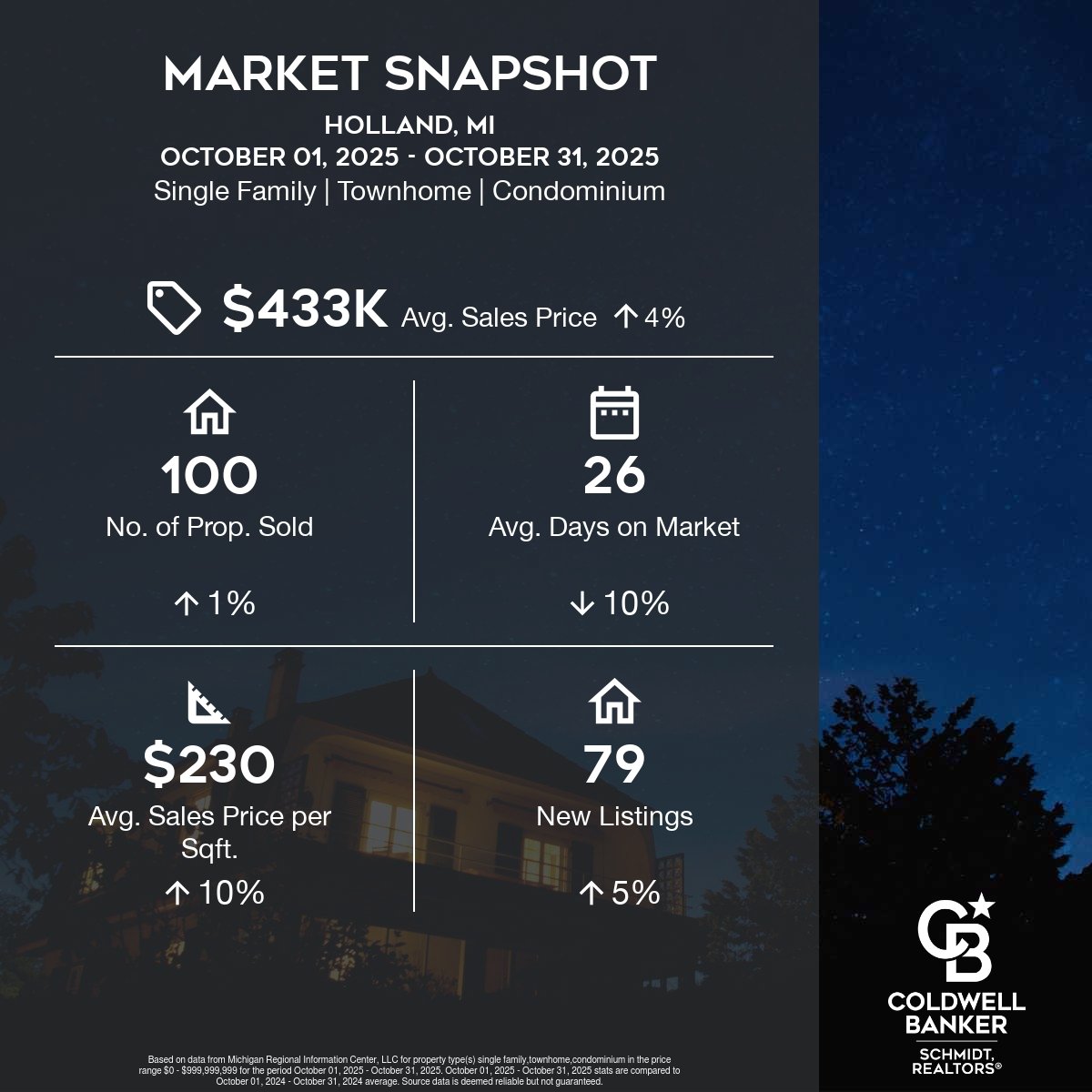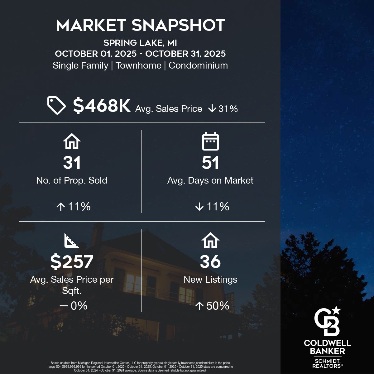 As November settles in, the West Michigan real estate market is shifting along with the seasons — and there’s plenty to talk about. Whether you’re considering a move, planning ahead for spring, or just keeping an eye on local trends, staying informed can make all the difference. From cozy in-town homes to lakeshore retreats, the market continues to show both resilience and opportunity. Let’s take a closer look at the October numbers and what they could mean for you. Call today for more detailed information (616) 594-0749.