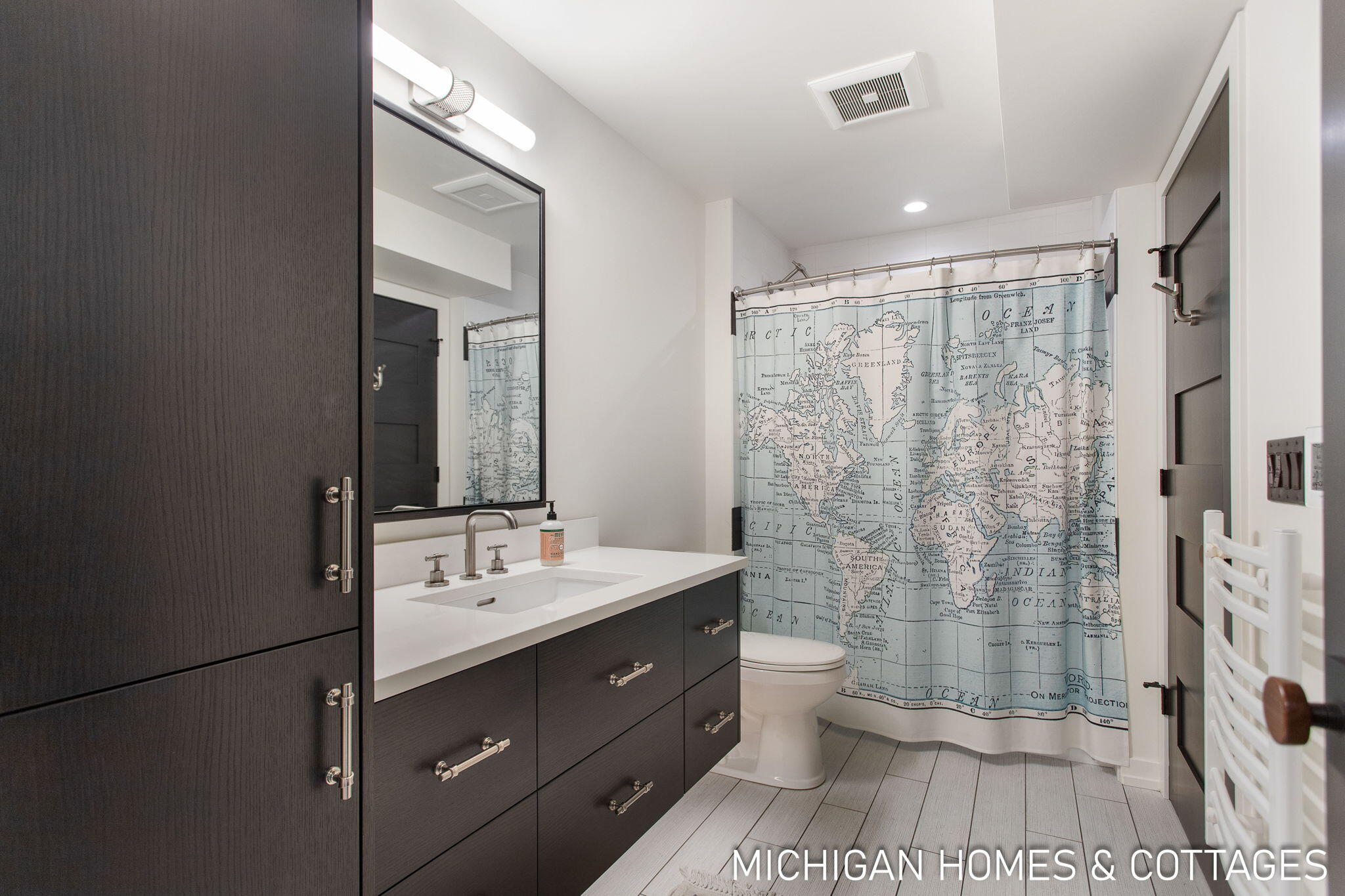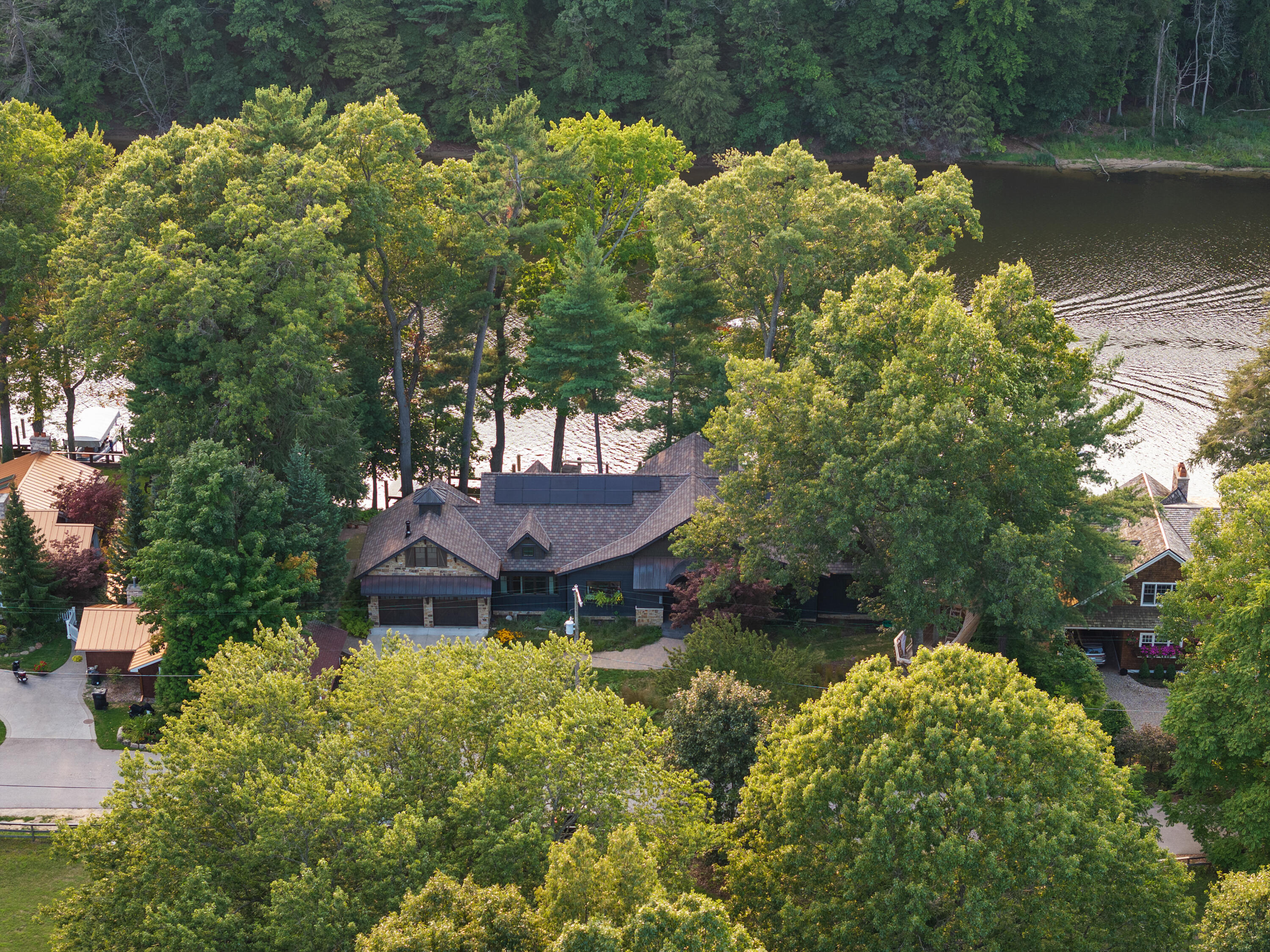 From the moment you step inside, you'll be captivated by the impeccable attention to detail and high-end finishes throughout. The home features five spacious bedrooms, each designed with comfort and style in mind. The designer kitchen is a culinary enthusiast's dream, equipped with top-of-the-line appliances including a La Cornue range, Sub-Zero refrigerator, built-in Miele coffee maker, and an exquisite rare granite countertop that perfectly complements the sophisticated cabinetry and fixtures. Wide plank hardwood floors flow seamlessly through the living areas, adding a touch of timeless elegance. The living spaces are thoughtfully designed for both relaxation and entertainment. The screened-in porch, with its full cantina sliding doors, creates a seamless transition between indoor and outdoor living. This inviting space is perfect for enjoying the prime waterfront location and features a swinging day bed, ideal for leisurely afternoons watching boats float by in the tranquil natural setting across the water. The primary suite is a true retreat, offering panoramic waterfront views, a custom closet system, and a spa-like ensuite bath that exudes luxury. Each additional bedroom is equally well-appointed, providing ample space and comfort for family and guests. The home's exterior is equally impressive, designed with serenity and harmony in mind. The grounds are beautifully landscaped with thoughtful xeriscape and native plants, enhancing the natural beauty of the property while promoting sustainability. Solar panels provide energy efficiency and support EV charging, reflecting a commitment to green living. In-floor heating ensures year-round comfort, and the laundry room's innovative pulley system adds a practical touch to the home's many conveniences. For outdoor enthusiasts and entertainers, the property offers an array of features designed to delight. The amazing pirate ship playhouse is a standout, professionally installed and designed to blend seamlessly with the trees and surroundings, providing endless fun and adventure. Multiple outdoor entertaining spaces are strategically positioned to offer stunning views of the water. The large boardwalk dock, with its multiple slips and a 12,000-pound lift, is perfect for boating enthusiasts and provides easy access to the river. Located just a short walk from downtown Saugatuck, this private and serene waterfront home offers the best of both worlds: the charm and vibrancy of one of America's best coastal towns and the tranquility of a secluded riverside retreat. Don't miss the opportunity to own this extraordinary piece of paradise, where every detail has been meticulously crafted for luxury living.